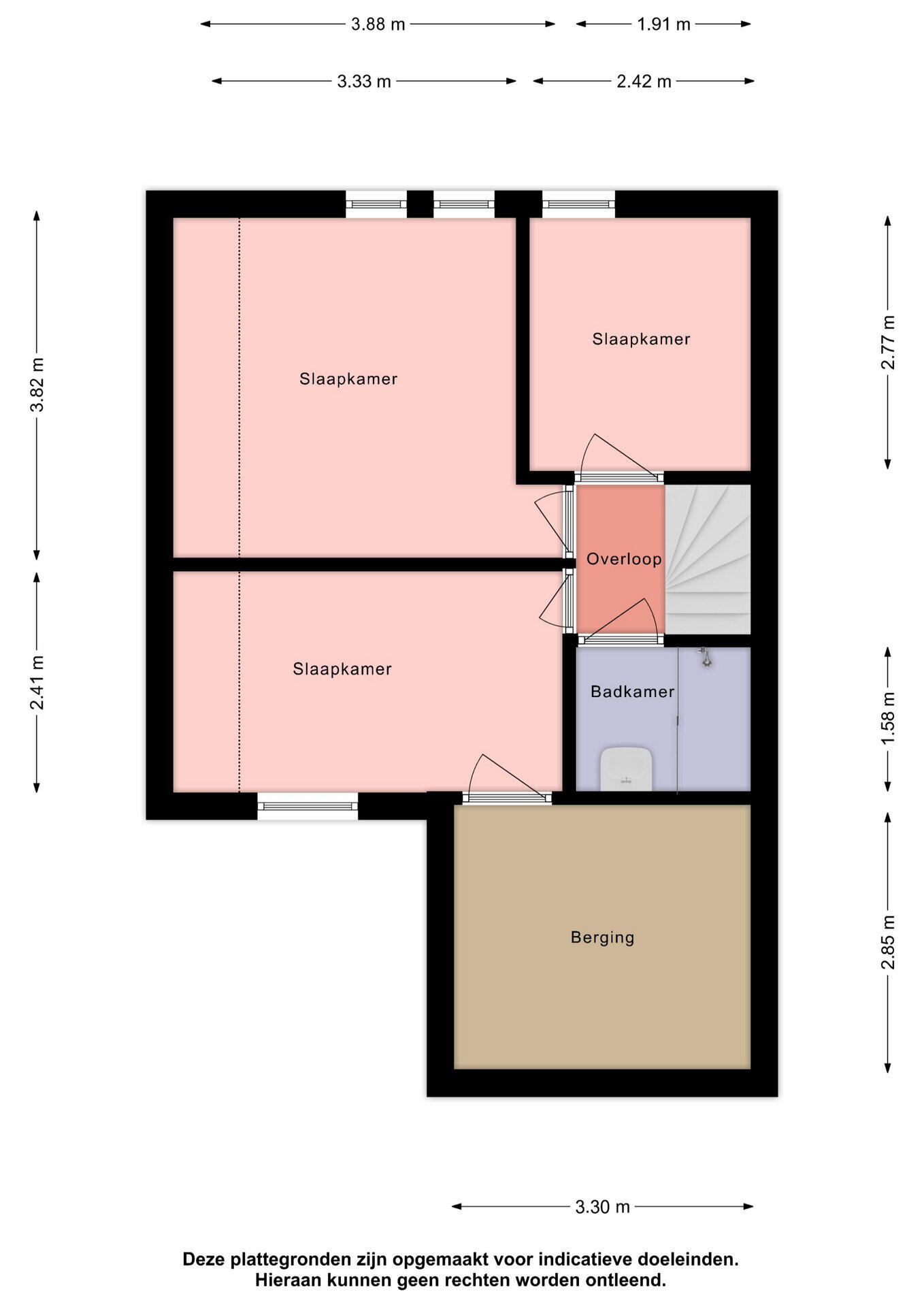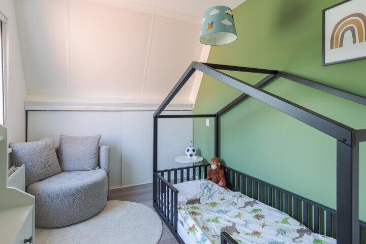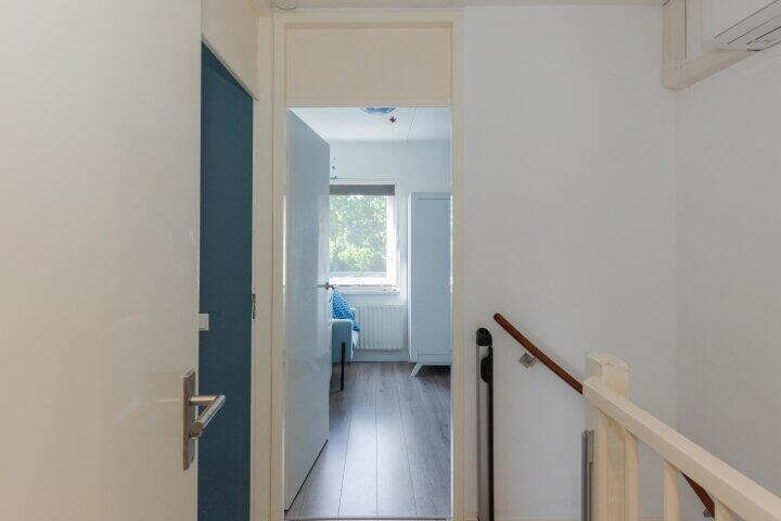 Op de eerste verdieping vind je drie prima slaapkamers en de badkamer. Als bonus is er nog een extra kamer, bereikbaar via een van de slaapkamers. Goed te gebruiken als extra slaapkamer, werkkamer of als opslagruimte.