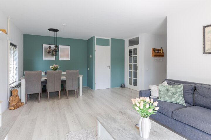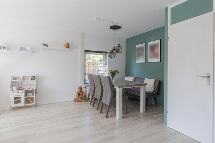Zodra je de hal binnenstapt word je al getrakteerd op een mooie sfeer en veel licht. De woonkamer geeft je vele mogelijkheden en heeft een schuifpui naar de tuin. De moderne keuken is van alle gemakken voorzien, hier iets lekkers koken is gewoon 'appeltje eitje'.