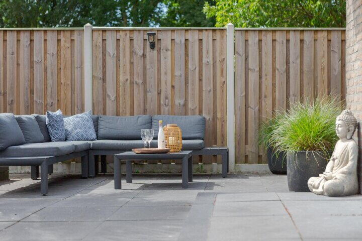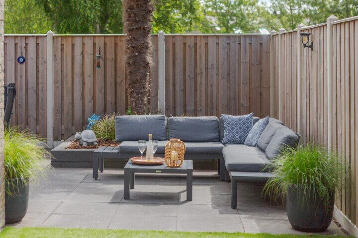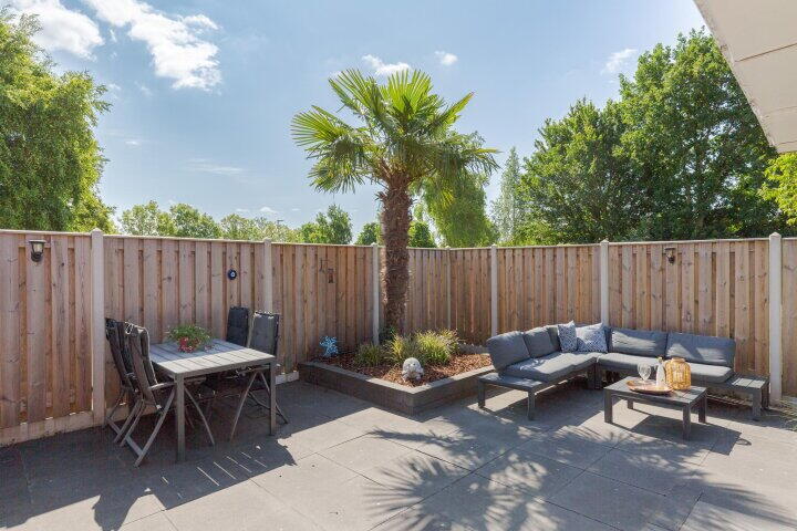 En dan de tuin. Tropisch, zelfs als de zon niet schijnt. Een heerlijke plek om 's middags te loungen onder het genot van een hapje en drankje. En, je zit helemaal vrij, niemand die je ziet.